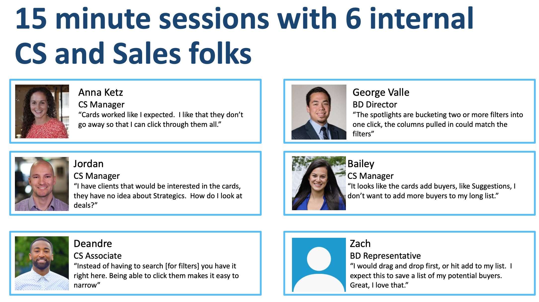 I interviewed them, shadowed them over days and weeks, listened to Gong recordings, and watched analysts build lists in real time.